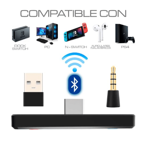 ADAPTADOR DE AUDIO Y MICRÓFONO BLUETOOTH PS4 SWITCH PC