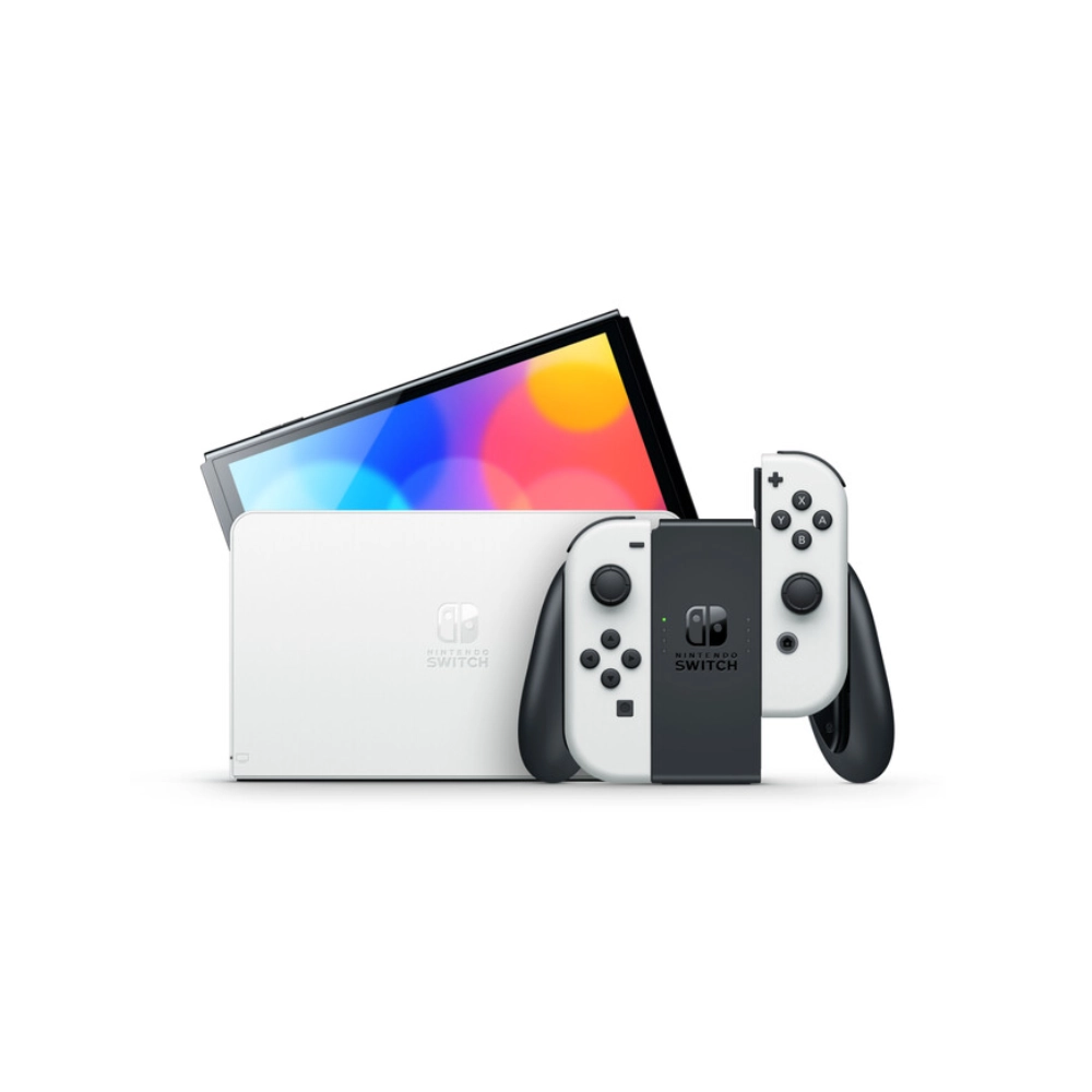 Vive la experiencia definitiva con la Consola Nintendo Switch™ – Modelo OLED (Blanco). Este paquete incluye la consola con pantalla de alta definición, los controles Joy-Con™ en un acabado blanco minimalista y la base a juego con puerto LAN integrado. Potencia, evolución y leyenda, reunidos en una sola consola.