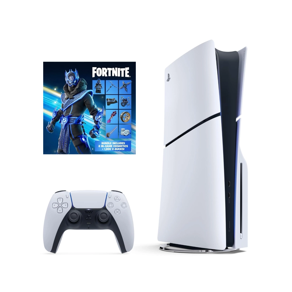 Vive la experiencia definitiva con la Consola PS5® Slim Fortnite® Cobalt Star Bundle (1TB). Este paquete incluye la consola con lector de discos, un mando DualSense y el exclusivo pack Cobalt Star con 8 elementos cosméticos y 1,000 paVos para destacar en el Battle Royale. Potencia, est