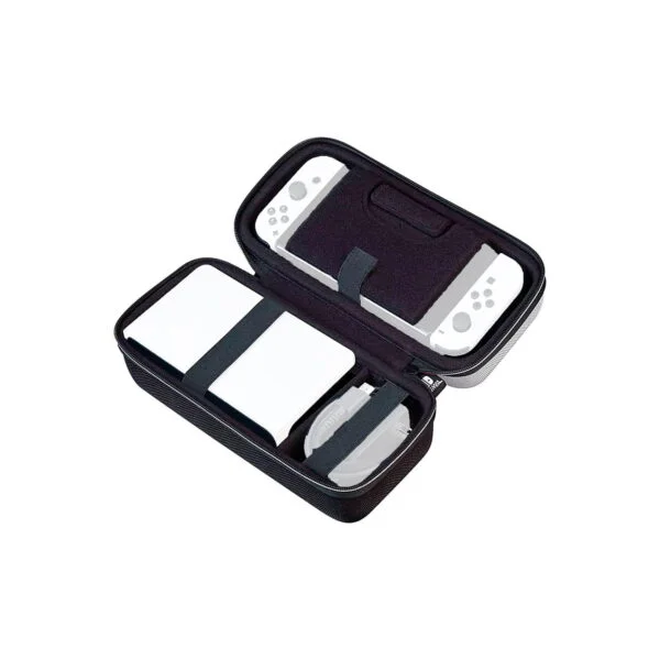 Diseñada específicamente para adaptarse a la Nintendo Switch, esta funda ofrece una protección óptima gracias a su carcasa rígida, asegurando que tu consola, controladores y tarjetas de juego estén a salvo de daños, golpes y arañazos durante el uso diario. Con un diseño profesional, incluye un amplio espacio interior para almacenar tus juegos y un práctico bolsillo de malla para mantener tus accesorios organizados. Además, su cremallera versátil garantiza la seguridad de tu Switch y todos sus accesorios en todo momento.