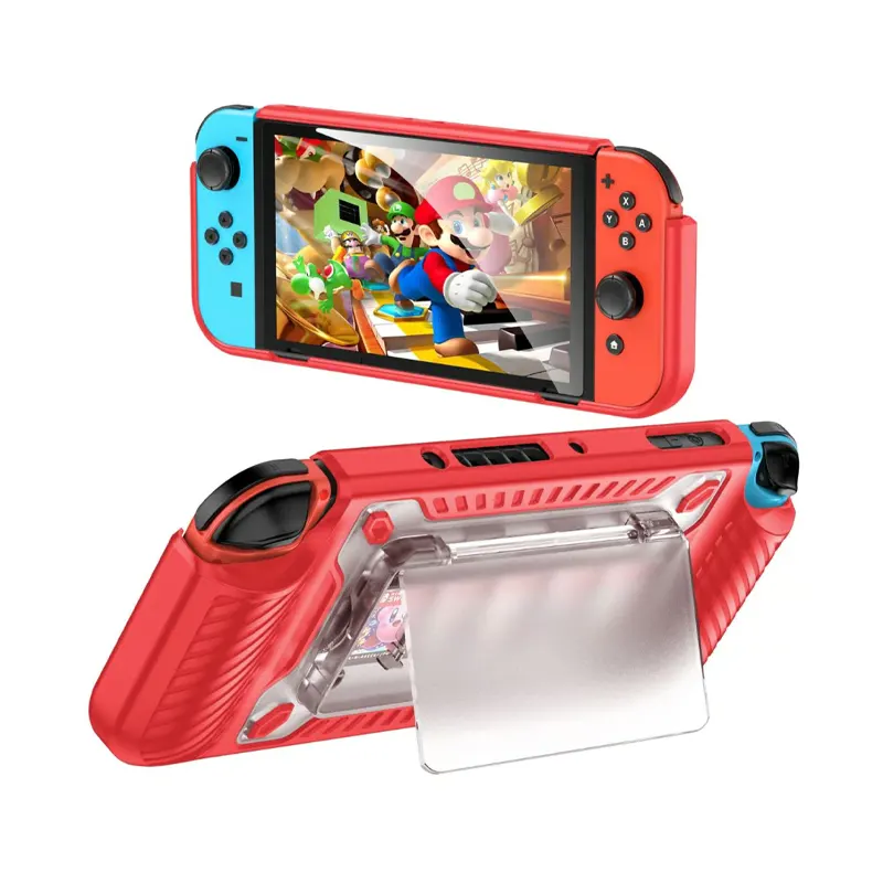 Este estuche elegante y estilizado está creado para proteger tu consola de arañazos, golpes y caídas. Está hecho con materiales de alta calidad y tiene un agarre cómodo, permitiéndote jugar durante horas sin fatigarte. Es duradero y protector, delgado y ligero, con un diseño elegante que se ajusta perfectamente a tu Nintendo Switch OLED.