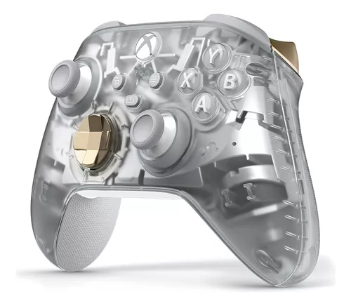 Descubre misterios con el Control inalámbrico Xbox: Edición especial Ghost Cipher, con un diseño transparente, un interior plateado, detalles metálicos y mucho más. Mira a través de la carcasa superior y los laterales de los agarres transparentes para ver cómo brillan las piezas de color plateado del interior.