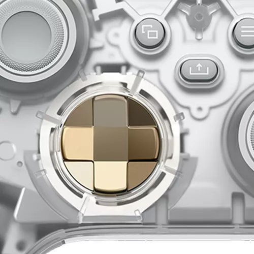 Mantén el objetivo con elegancia con los gatillos metálicos de bronce y un pad direccional que hace juego. Controla la acción con agarres texturizados de color gris ceniza por la parte posterior de la carcasa.