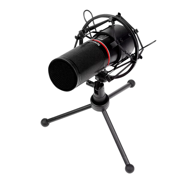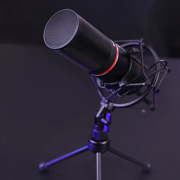 El Redragon Blazar GM300 es un micrófono de condensador diseñado para streaming, ideal para captar sonido y para transmisiones en vivo. Tiene un diseño elegante y funcional, lo que lo hace atractivo para usar frente a la cámara, y puede mejorar considerablemente la calidad de tus emisiones. Para brindar soporte adecuado, el Blazar viene con un trípode de escritorio resistente, ajustable y rotativo, perfecto para transmisiones en vivo. Los amortiguadores incorporados reducen el ruido causado por vibraciones en la superficie donde se apoya. Esto es fundamental para micrófonos de alta sensibilidad como el Blazar. El micrófono cuenta con un indicador luminoso para mostrar cuándo está encendido y un botón integrado para controlar el volumen, lo que facilita su uso durante las transmisiones en vivo. La calidad del Blazar se refleja en estos detalles. Su patrón de captura cardioide se centra en tu voz y elimina el ruido de fondo, logrando un sonido limpio y claro para tus transmisiones.
