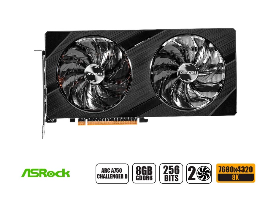 TARJETA DE VIDEO ASROCK ARC A750 CHALLENGER D 8GB GDDR6 INTEL 256BITS
