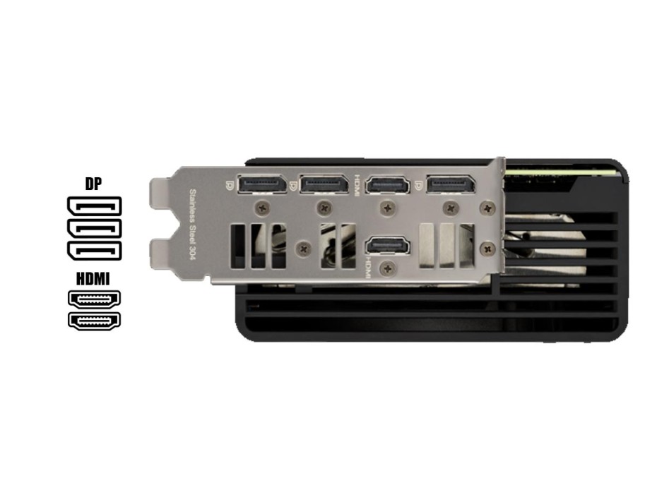 INTERFAZ : x 2 (Native HDMI 2.1) x 3 (Native DisplayPort 1.4a) HDCP Support (2.3)