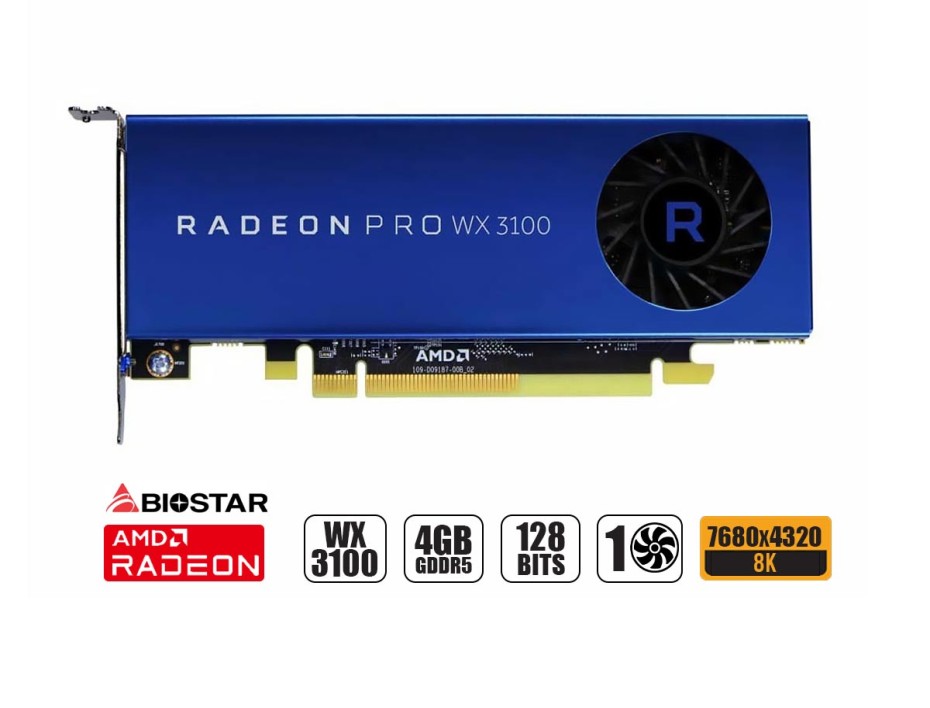 TARJETA DE VIDEO BIOSTAR RADEON PRO WX 3100 4GB GDDR5 128 BITS, 1 VENTILADOR