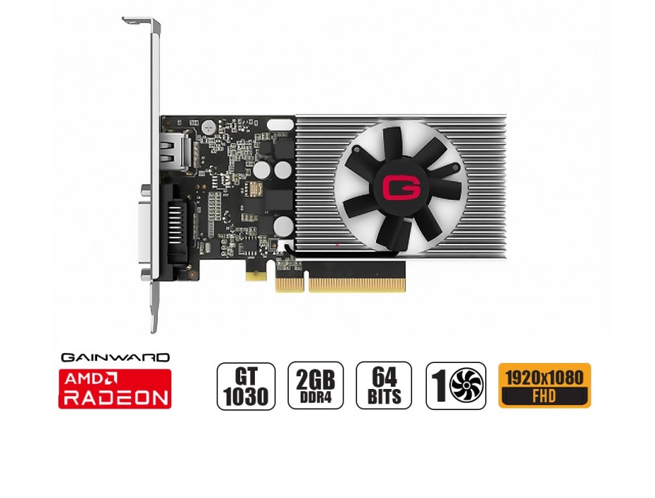TARJETA DE VIDEO GAINWARD GT 1030 2GB DDR4 GEFORCE NVIDIA 64 BITS, 1 VENTILADOR