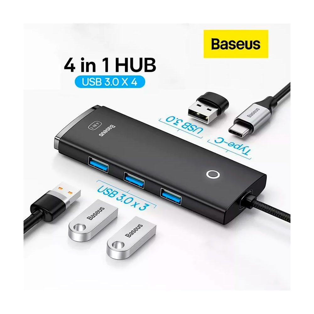 * Adaptador BASEUS USB-C HUB 4 en 1 * 4X Puerto de salida simultánea a la velocidad de la eficiencia de su trabajo * Máximo 5Gbps de velocidad de transmisión rápida y estable * Potente chip para más estable de la señal y suave operación * Perfecto para unidades de disco duro * La función OTG desbloquear la nueva función de teléfonos * Conectar los teléfonos para unidades Flash USB/discos duros * Plug and play para múltiples sistemas operativos, como Windows Apple OS Linux y Vista