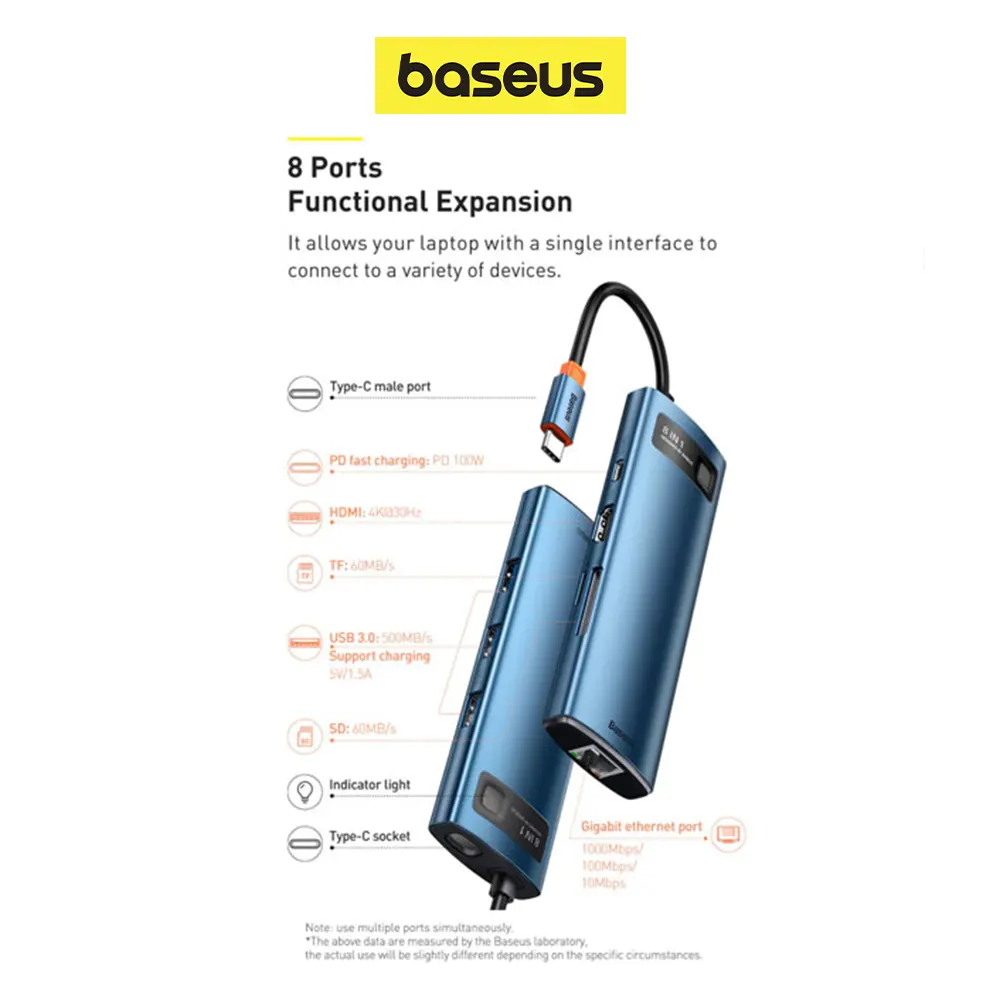 ✅ Adaptador BASEUS USB-C HUB 8en1 ✅ 1x HDMI + 3X USB 3.0 + 1X RJ45 + 1X SD Slot + 1X TF Slot + 1X 100W PD ✅ Puerto PD: 5V / 9V / 145V / 20V5A (Max ) ✅ Puerto SD / TF: admite 480Mbp/s (Máx.) ✅ Puerto de red RJ45: admite 10 Mbps, 100 Mbps, 1000 Mbps ✅ Corriente en espera: <400mA, Voltaje: 5 V-20 V ✅ USB 3.0: admite 5 Gbps y es compatible con versiones anteriores de USB 2.0 ✅ Sistema de soporte: para Google Chrome OS, para Apple Os, para Windows XP / 7/8/10, para Linux, para Vista ✅ Dispositivos aplicables: portátiles de tipo C convencionales, teléfonos móviles como Apple book Pro 2016/2017/2018/2019/2020, Apple book air 2018/2019/2020, etc ✅ 4KHD: admite pantalla HD 4K a 30Hz (máx.)- Nota: la interfaz 4K HD marcada anteriormente es la interfaz compatible con HDMl, puede enviar señales de audio y video sin comprimir