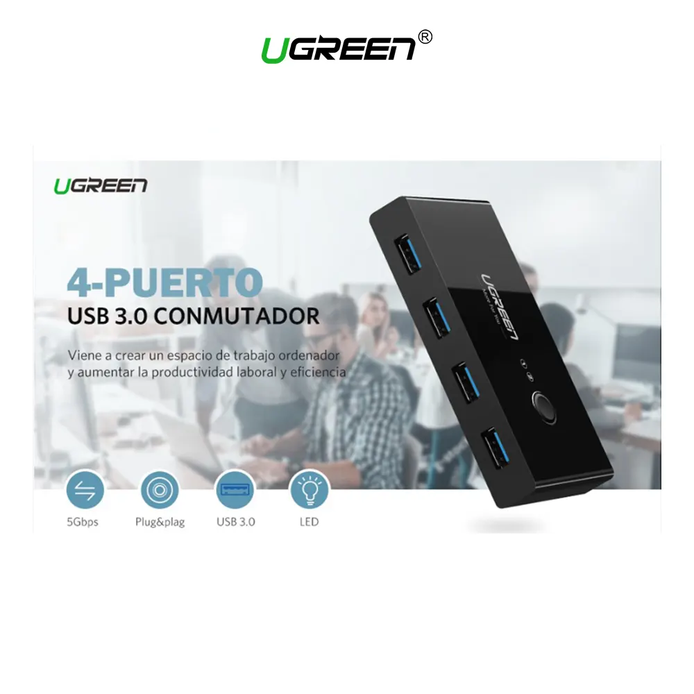 ✅ UGREEN switch usb 3.0 de 4 puertos es una excelente opción para compartir 4 dispositivos USB entre dos computadoras ✅ El conmutador USB ofrece la velocidad de transferencia de datos SuperSpeed,USB 3.0 de hasta 5 Gbps. (10 veces más rápido que USB 2.0) ✅ Este conmutador USB 3.0 es plug-and-play, sin necesidad de instalación de controlador adicional ✅ Diseño de interruptor de botón, interruptor de un solo toque, cambia fácilmente entre dos computadoras ✅ Los brillantes indicadores LED le permiten determinar fácilmente qué computadora tiene el control ✅ USB Sharing Switch le permite combinar con un hub USB para compartir varios dispositivos, por ejemplo, impresoras, escáneres, etc. camión Powered con no requiere fuente de alimentación externa