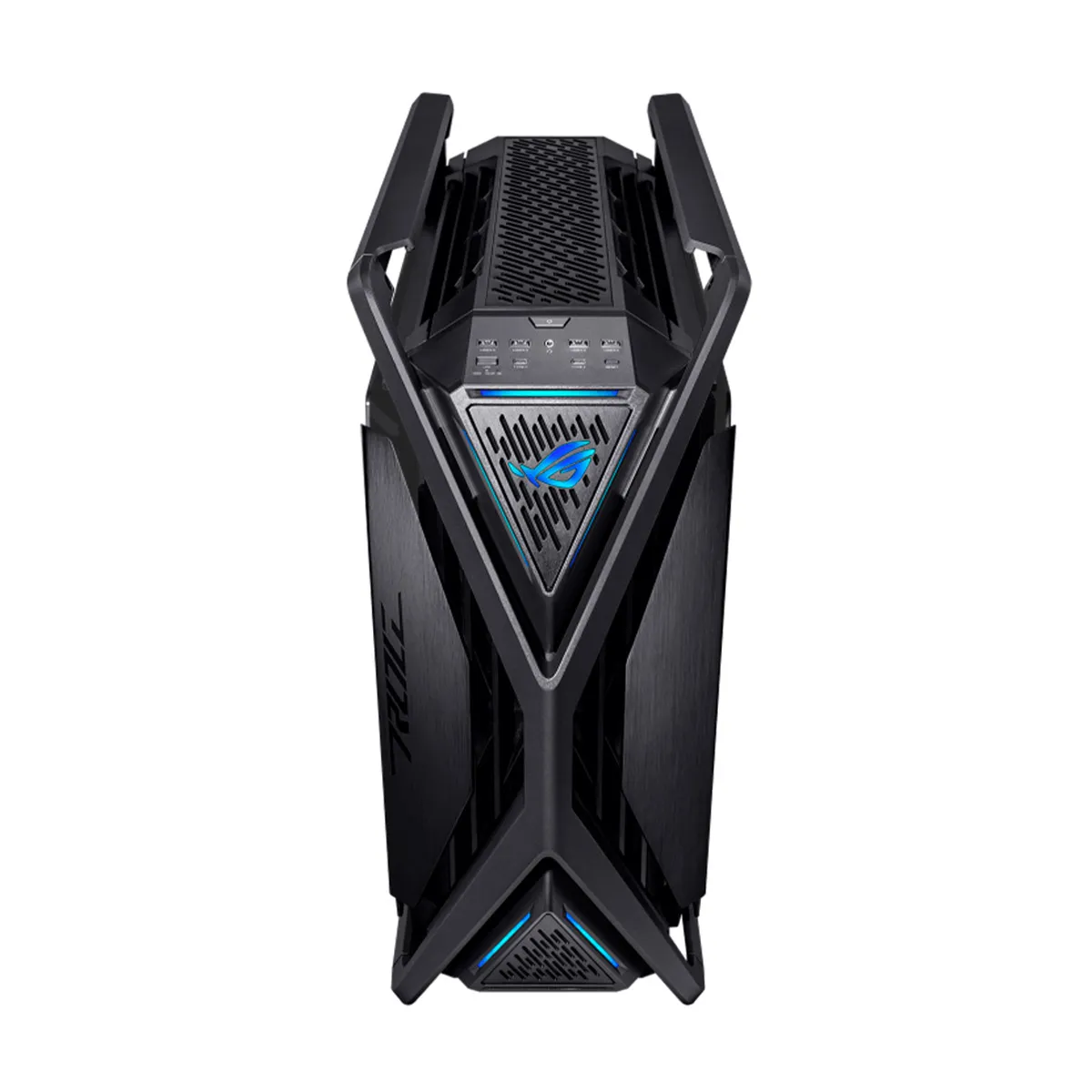 Gabinete de pc gamer ROG Hyperion GR701 E-ATX, soporte de radiador doble de 420 mm, cuatro ventiladores de 140 mm, soporte de GPU de metal, almacenamiento de componentes, concentrador de ventiladores ARGB, carga rápida de 60 W.