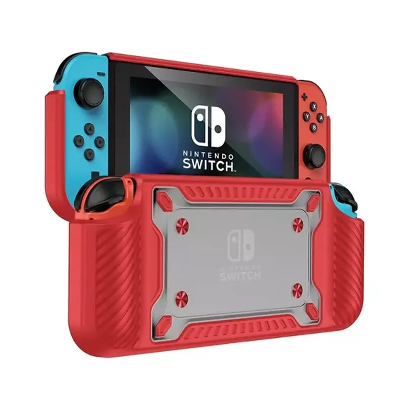 Este estuche elegante y estilizado está creado para proteger tu consola de arañazos, golpes y caídas. Está hecho con materiales de alta calidad y tiene un agarre cómodo, permitiéndote jugar durante horas sin fatigarte. Es duradero y protector, delgado y ligero, con un diseño elegante que se ajusta perfectamente a tu Nintendo Switch OLED.