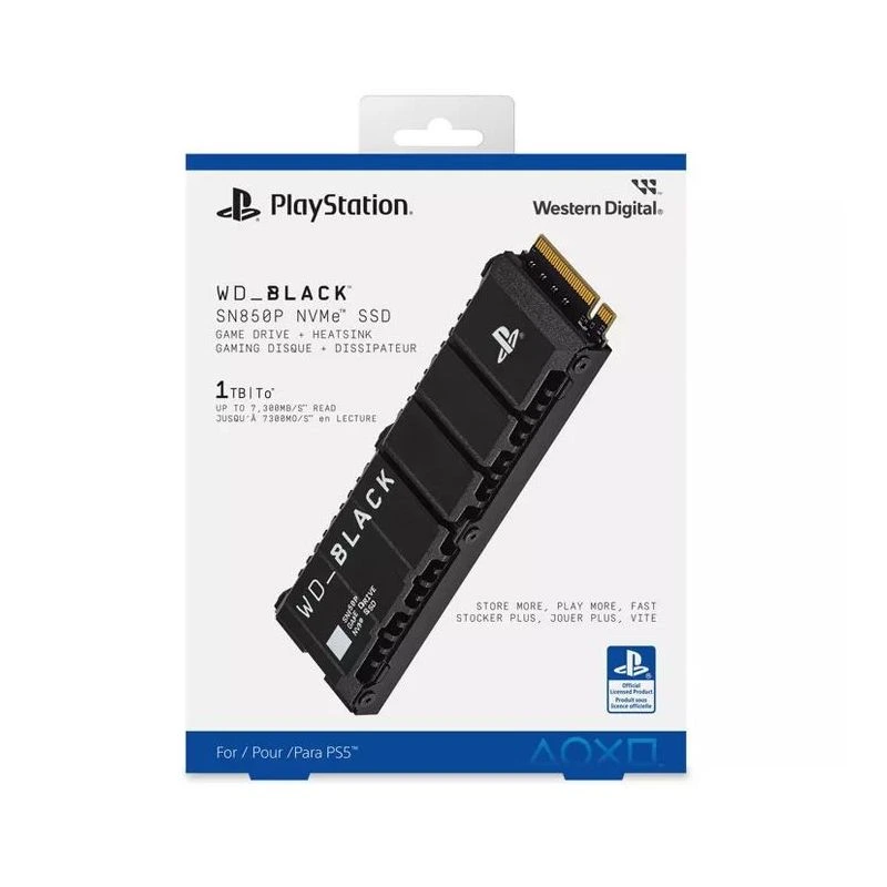 Esta unidad SSD de 1TB M.2 NVMe de Western Digital está diseñada para cumplir con los rigurosos requisitos de rendimiento de la PlayStation 5. Ofrece velocidades de lectura extremas (generalmente superiores a 5,500 MB/s), garantizando que los juegos instalados carguen con la misma rapidez que si estuvieran en el disco interno de la consola.