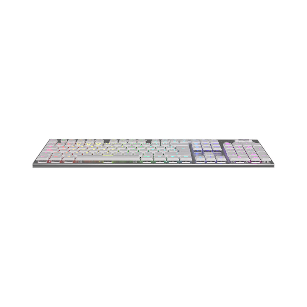 El teclado está diseñado con interruptores rojos de perfil bajo medio, conectados desde la placa inferior. Viene con un cable USB-A a USB-C sólido que garantiza una alta estabilidad en el registro de las teclas. Ofrece triple conectividad: inalámbrica de 2,4 GHz, Bluetooth 5.0 y conexión por cable desmontable, lo que proporciona diversas opciones para facilitar su transporte y asegurar una comodidad óptima. Además, el modo cableado permite recargar la batería del teclado.
