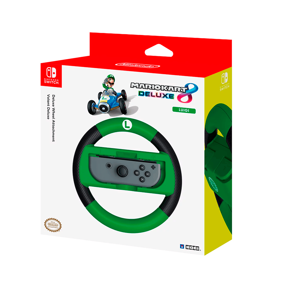 Timon Nintendo Switch mario Mario Kart 8 Luigui Recorre las emocionantes pistas de Mario Kart 8 Deluxe con este increíble volante. Simplemente coloca tu Joy-Con* en el volante y disfruta de un control más realista y mejor agarre. Un volante de mayor tamaño para un mejor control, complementado por un agarre de goma de lujo y gatillos grandes y sensibles separan este accesorio del resto. Recorre las emocionantes pistas de Mario Kart 8 Deluxe con este increíble volante. Simplemente coloca tu Joy-Con* en el volante y disfruta de un control más realista y mejor agarre. Un volante de mayor tamaño para un mejor control, complementado por un agarre de goma de lujo y gatillos grandes y sensibles separan este accesorio del resto. IMAGEN REFERENCIAL (El empaquetado del producto puede tener variaciones)
